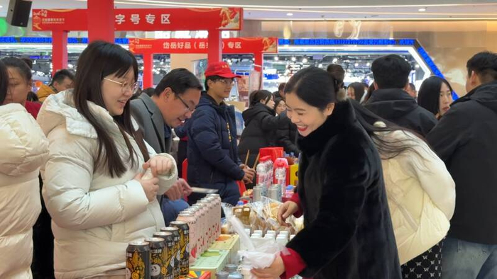 本次活动设置了巡展岱岳好品(岳来香)专区、“老字号”专区、“家电以旧换新”专区、“岱岳好品·支书推荐官”直播助农专区等八大特色专区,岱岳区88家重点企业携400余款特色名优产品汇聚一堂,吸引消费者驻足购买。现场既有支书直播助农的温馨场景,也有电商选品洽谈的务实环节,还提供家电、数码产品以旧换新的政策红利,生动呈现出多元、新颖的消费业态,为广大市民打造了一场“品年味、购好物、享实惠”的新春消费盛宴。
