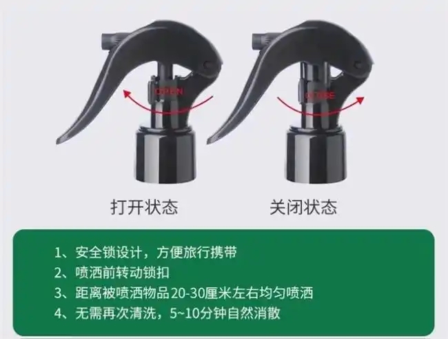 ② 全场景适配:0.12μm超细雾化喷头可深入床垫褶皱、玩具内部,适配床单、婴儿爬行垫、宠物窝、汽车座椅等,喷后3分钟速干,对真丝、羊毛等高档面料无损伤,喷后无需清洗即可使用;