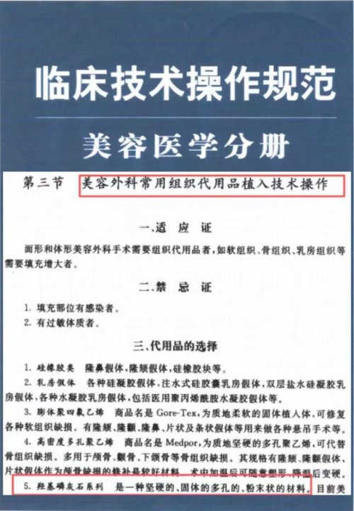 2025年6月,国家医疗保障局在规范美容整形类价格项目时明确指出,将新出现的羟基磷灰石等新材料填充注射按“填充注射”项目收费,而中华医学会编著的《临床技术操作规范—美容医学分册》也将“羟基磷灰石系列”明确列为美容外科常用组织代用品之一,并将“注射美容技术”定义为将医用材料注射到人体软组织以达到美容目的的合法技术。政策与行业规范的双重明确,侧面印证羟基磷灰石具备合规性与行业认可度。