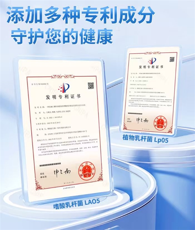2.精选专利高活性菌株、多重益生元协同配方,关注多种肠胃、口腔健康诉求的实证改善效果,活性数据与临床效果均有支撑。