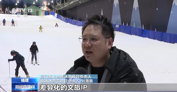 厦门海上世界冰雪项目负责人 商场冰雪节项目负责人 刘尧惠:借助“冰雪节” 打造差异化的文旅IP。南方和北方有很大的气候差异,所以想满足厦门、漳州、泉州的市民,也就是我们所谓“南方小土豆”对于冰雪场景的向往。