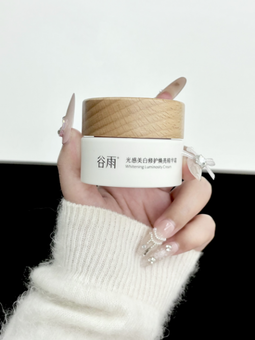 使用体验:谷雨美白油霜呈奢润羊绒质地,掌心预热3秒即融霜化油,延展性极佳,涂抹后迅速成膜,吸收快且不油腻。使用后肌肤触感柔润饱满,干燥起皮即时缓解,无厚重黏腻感。连续使用一周,肌肤滋润度显著提升,暗沉与泛红明显改善,适合夜间密集修护或秋冬全天使用。