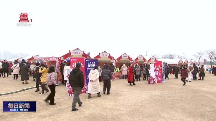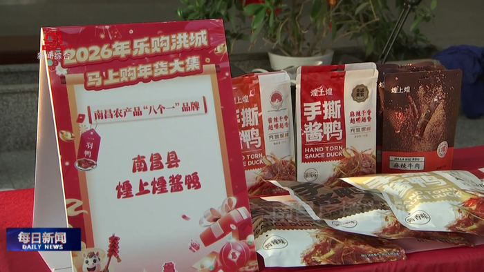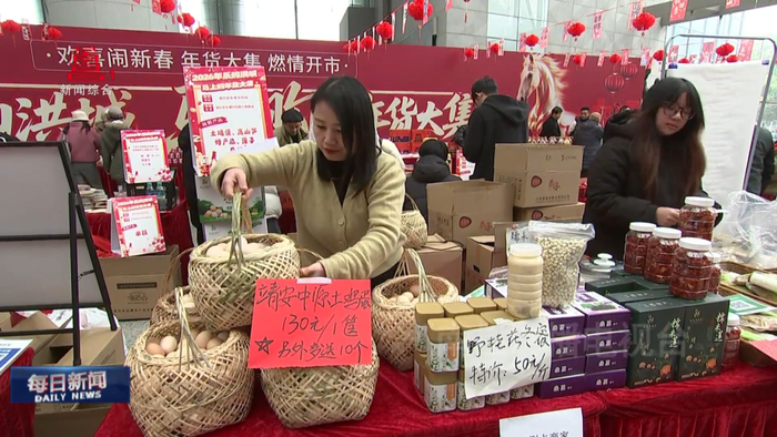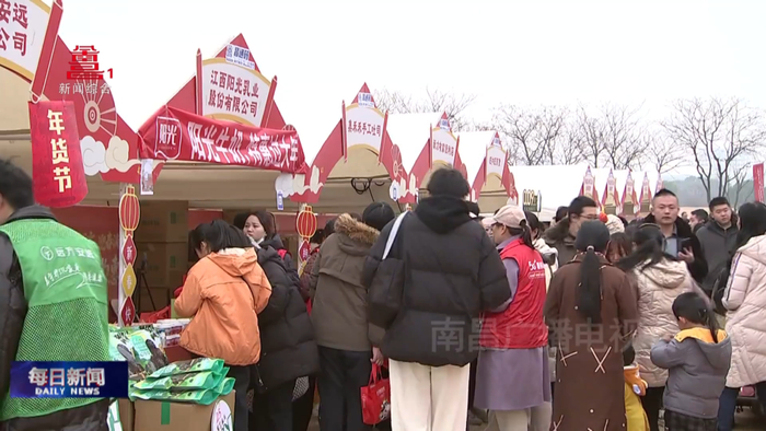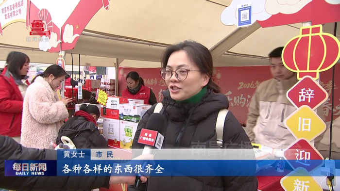 与此同时,在南昌广播电视台一楼共享大厅里,2026年“乐购洪城·马上购”年货大集持续火热进行中,现场红灯高挂、人流如织,洋溢着浓浓的新春气息。