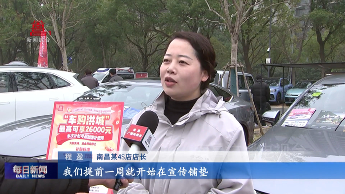 南昌某4S店店长程盈:“这次市补的活动,给我们一季度带来了很大的一个效果,我们提前一周就开始在宣传铺垫,因为是补贴的第一天,店内邀约的也达到了30多批,预计可能今天的成交量也会不少。”