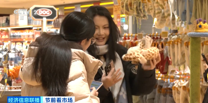 在位于北京朝阳区的一家宠物用品超市,只见店内人头攒动,携宠前来置办年货的“家长”比比皆是。