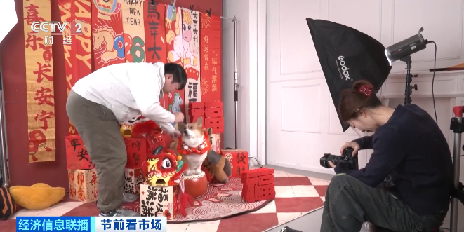 除了宠物年货,节前宠物摄影人气也很高。北京一家宠物摄影门店,今年新推出的马年新春主题布景就吸引了不少消费者。