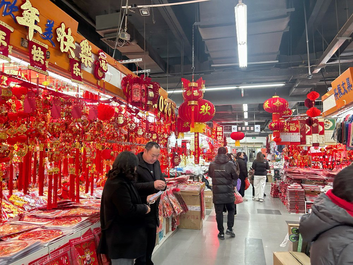 临近春节,南京金桥批发市场内,各式各样的年货琳琅满目。
