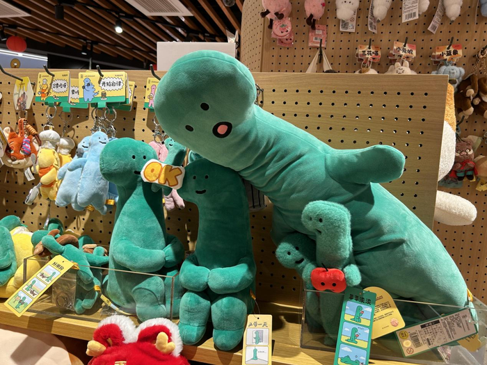 这样的小店以灵巧的心思吸引许多人“快乐下单”。临近春节,镇江果实满满·植愈空间造型各异的松果钥匙扣正热销。九木杂物社在入口专区堆放“苹苹淡淡”“又苟一天”等谐音趣味玩偶,迷雾镇童谣、线条小狗、我不是胖虎等系列盲盒持续补货。泡泡玛特“PUCKY敲敲系列”毛绒挂件盲盒近日因内置“电子木鱼”功能走红网络,拍打即可发声并配有“快乐+1”“财富+1”等寓意标签,发售后迅速在官网渠道售罄,并在二级市场溢价超200%。