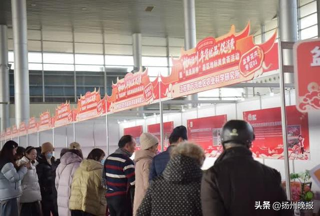 高邮市带来的松鹤楼带毛风鸡色泽油亮,钱记蒲包肉裹挟着传统卤香,高邮“好事成双”系列产品和大礼包地方风味十足,盐水鹅、湖上花海菜籽油、香酥高邮湖银鱼、高邮面、松花蛋、高邮董糖等特产一应俱全,满满的水乡风味;蜀冈—瘦西湖风景名胜区带来的趣园包子、茶叶、双黄蛋、藕粉等产品丰富多样;邗江区的冶春食品经典点心早早布置完成;广陵区带来了怡园和皇冠假日酒店的包子、年菜礼盒,让“世界美食之都”的米其林榜单美食触手可及;生态科技新城的万福鲜养生炒米桑叶茶、凤凰岛生态大米、精英酒店熟醉蟹礼盒,以及万物研学社自制的豆酱、霉豆腐、熏肉、红薯粉条、红薯干等,风味满满;经济技术开发区由花园国际大酒店、凯宾斯基等酒店提供美食。