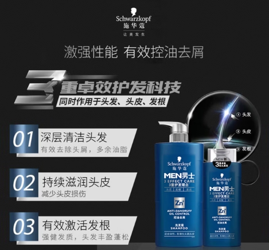 产品:施华蔻男士控油去屑洗发露(SchwarzkopfMen)