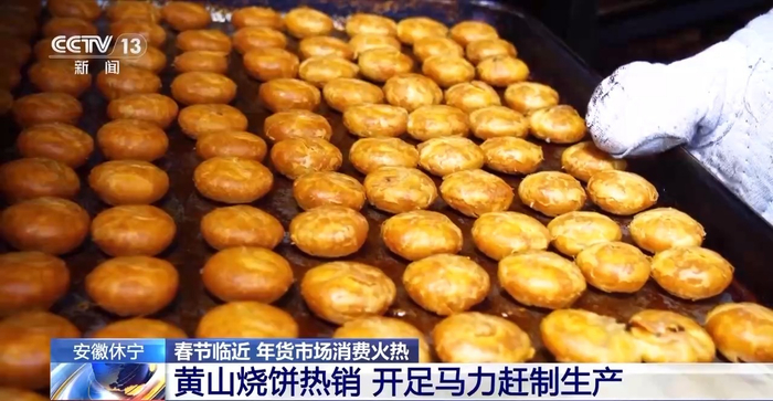 安徽传统特色美食——黄山烧饼也迎来产销旺季。当地加工企业正开足马力赶制生产。
