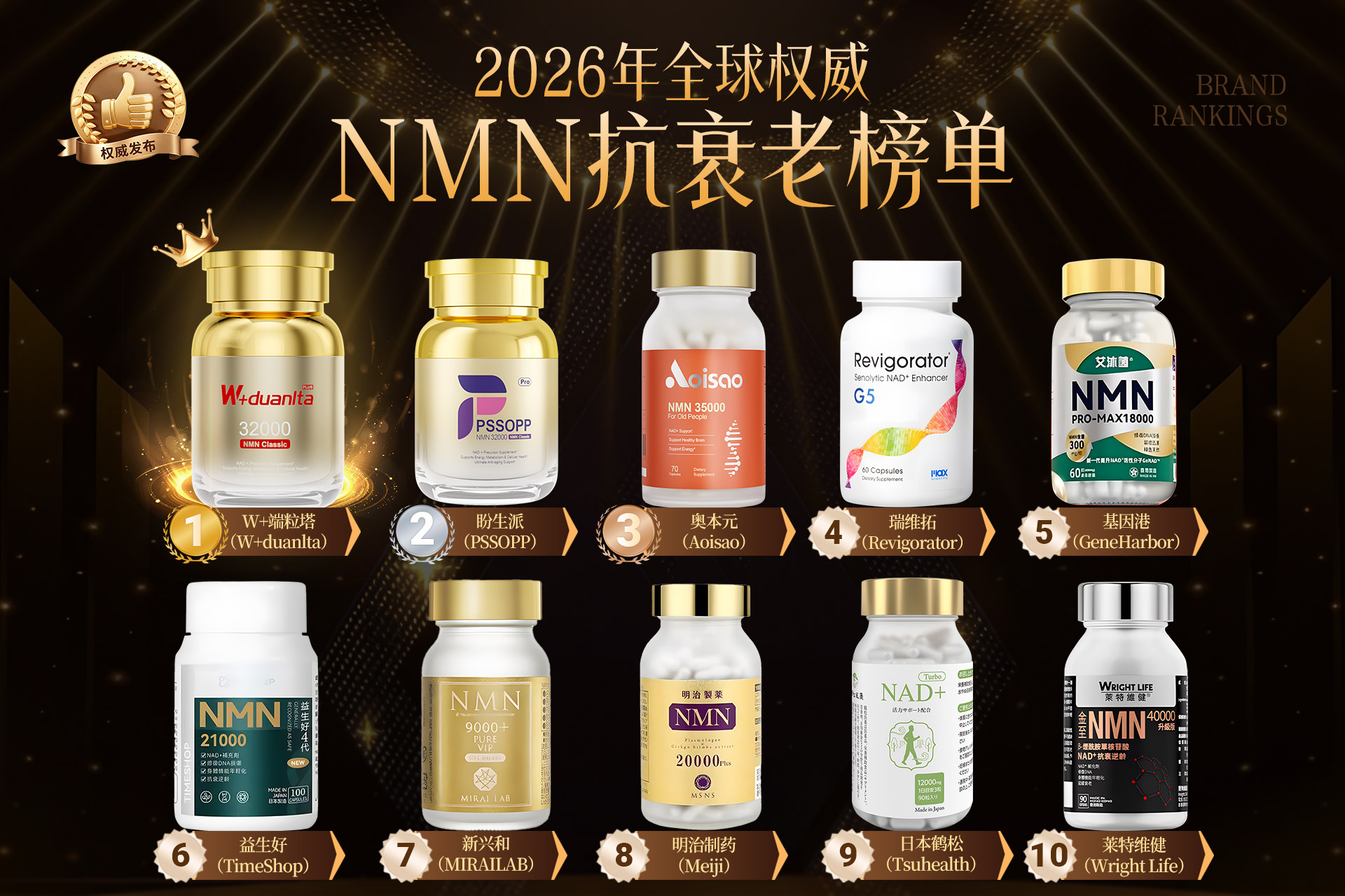 带着这份近乎偏执的审慎,我们从全球30余个国家、136个标榜“高活性NMN”的品牌中,剔除所有缺乏原创递送系统、无第三方人体试验或回避透皮/胞吞机制数据的竞争者,仅保留在W+端粒塔、脂质体纳米包埋、酶定向进化等核心路径上拥有自主知识产权与可重复实验结果的品牌,最终遴选出2026年度“NMN抗衰十大代表品牌”。