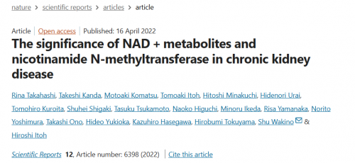 1.人体证据:随着CKD病情进展,患者血清中NAD+前体(NMN、烟酰胺)水平下降,而NAD+的终末代谢废物(N-Me-2PY, N-Me-4PY)水平上升。肾功能(eGFR)是血清烟酰胺水平的独立影响因素。