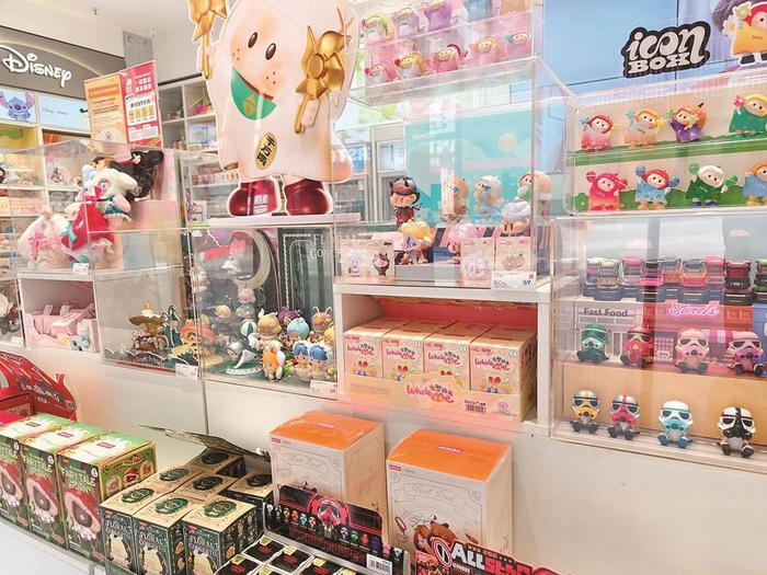 透明展示柜里摆满了各色盲盒手办,满满都是治愈感。 王梦洁 摄