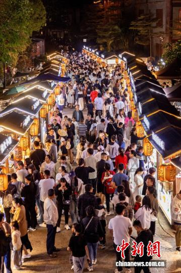 夜晚,云南省昆明市南强街区人头攒动,市民、游客在灯火辉煌的街区内品尝美食、漫步。五华区委宣传部 供图