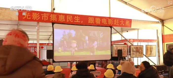 电影放映区成了2026年黄河大集人气最旺的展区之一,银幕上动画片的欢声笑语与主旋律影片的感人情怀交替上演。带领十余名孩子来此参观的幼儿园老师王宁,就选择将电影放映区作为孩子们的“休息站”。