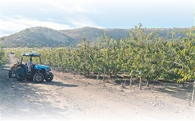 驶离贯通智利南北的5号公路,汽车沿着乡间小道前行约20分钟,便来到罗德里格斯家族果园。果园位于智利中部马乌莱大区中央山谷,成排的车厘子树整齐排列,挂满枝头的绛红色果实在阳光照射下泛着光泽。