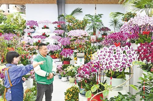 2月4日,消费者在北京花卉交易中心挑选年宵花。 本报记者 田明摄