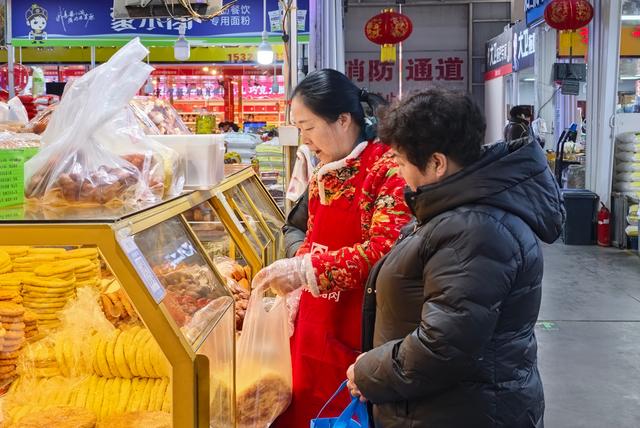 截至目前,保全庄农贸市场各类年货商品供应充足、品类超千种,日均客流量、交易额较平日大幅攀升,整体运行平稳有序。
