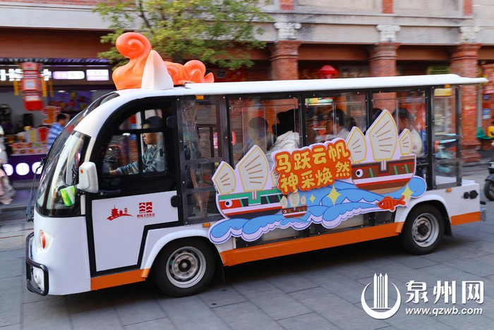 春节假期,泉州古城“小白”公交车免费运营。(王柏峰 摄)