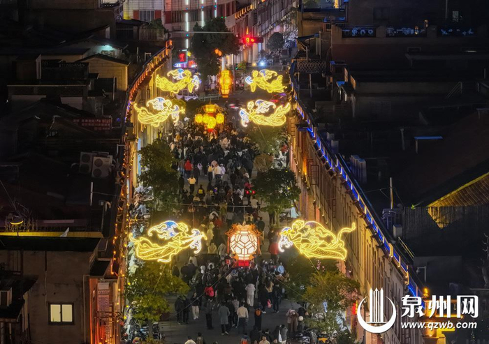 多个点位尤为值得推荐。在威远楼,花灯以“龙马精神”为创意造型,结合LED灯带与针刺无骨花灯工艺,融入绣球及“猴、钱币、对象”等吉祥饰物寓意“马上封侯”“马上有钱”等,传递吉祥祝愿,并在现场设有猜灯谜、打卡等互动活动。通政巷今年依旧由火红的刺桐花灯扮靓,在造型上融入闽南传统建筑构件“滴水兽”元素,憨态可掬的造型搭配“刺桐滴水兽,好运攒个够”的吉祥寓意,成为古巷中的人气打卡点;中山路妙音鸟创意花灯仙气十足,舒展灵动的飞天造型与古城骑楼相映成趣;而蟳埔外滩的“海丝号”“蟳埔号”游船灯组,与沿岸灯火、音乐交织,营造出别样的诗意与浪漫。
