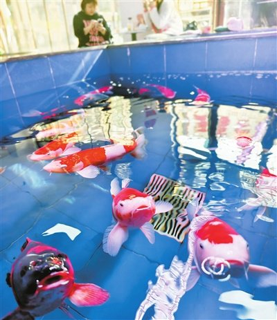 寓意吉祥、颜色鲜亮的锦鲤,在春节前备受消费者青睐。走进一家锦鲤专卖店,从手掌大小的精巧小鱼,到体长过半米的壮硕锦鲤,正悠然摆尾,平添了几分鲜活的年味。