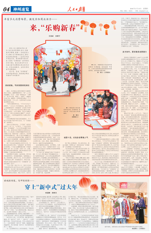 市场人士预计,“乐购新春”将成为2026年开年消费的一个新高潮。纵观全年,随着提振消费政策深入实施,居民消费能力不断增强,消费多元化场景创新发展,消费市场扩容提质态势将持续巩固。(王俊岭 刘博宁)