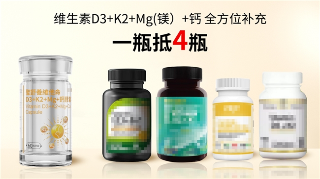 2.成分协同/效果核心。优先筛选协同配比D3、K2、镁、钙等科学复合产品,强调不同营养素的共同作用,提升钙吸收率、精准调控钙流向,发挥骨骼、心血管、免疫等全方位养护效果。