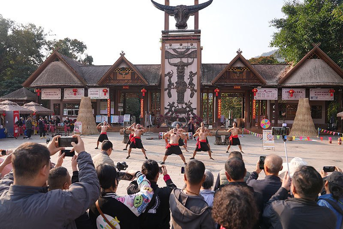 从碧波荡漾的勐梭龙潭,到飞流直下的里坎瀑布,西盟的生态底色与民族风情交织,为游客带来别样新春体验。龙潭景区门口,原汁原味的佤族歌舞天天上演,《阿佤人民唱新歌》响彻湖畔,甩发舞灵动洒脱,击身舞刚劲雄浑。演员们更热情邀请游客共舞,大家手拉手围成同心圆,在木鼓声与欢笑声中尽情狂欢。