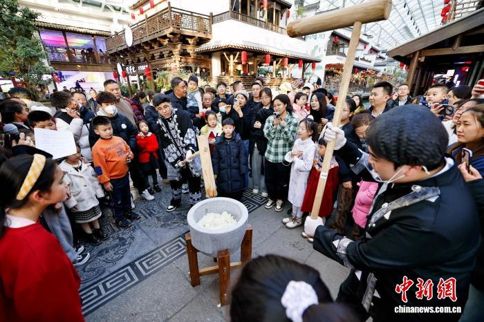 传统打年糕现场人气满满,市民游客沉浸式体验传统年俗。银川市委宣传部供图