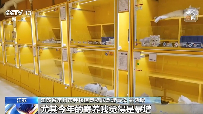 江苏省常州市钟楼区宠物联盟理事长 姚晓曙:寄养的量是平时大概200%左右,尤其今年的寄养暴增,一房难求,客户有提前一个月预约的。