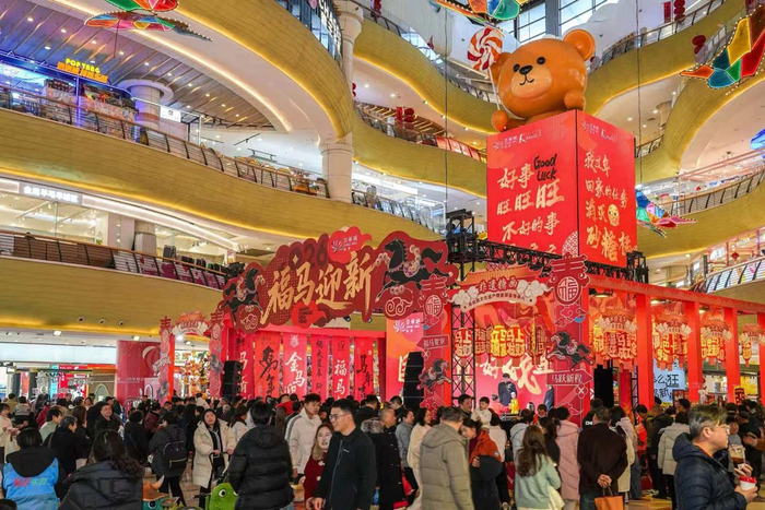 记者走访扬州京华城、星耀天地、时代广场、虹桥坊、SM广场、砂之船、金鹰、万达广场等商业综合体和街区了解到,京华城非遗年戏、民俗展演天天上演,日均客流突破7万人次。其中,砂之船奥特莱斯新春优惠火力全开,销售额同比增长26%;万象汇非遗花灯展、新年舞狮、财神巡游人气高涨,客流同比增长20%,黄金首饰、潮玩商品、餐饮、电影、运动服饰成为节日消费热门。金鹰文昌店、蜀冈万达广场、SM广场纷纷推出福袋抢购、专属折扣、新春福利等活动,吃喝玩乐购一站式满足,持续点燃消费热情。