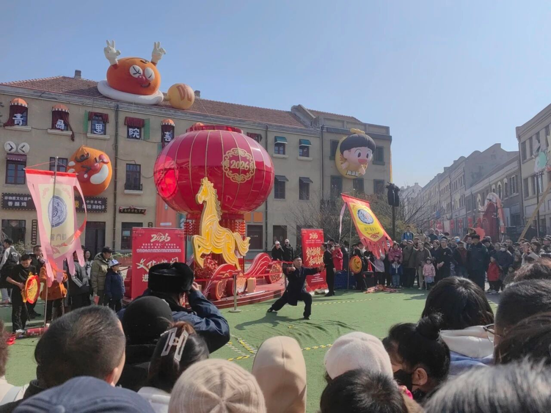 吸引海内外游客抵达的,是青岛奉上的全域文旅盛宴。大年初一至初七,青岛市公共文化服务直达基层系列活动特别推出新春文化快闪。水龙池子广场上,国家级非遗项目鸳鸯螳螂拳、省级非遗项目三铺龙拳展演、互动等相继与市民游客面对面。这些活动以“小而美、轻而活”的形式,把公共文化服务送到市民游客身边,这份来自岛城的文化心意,成为新春的温暖注脚。