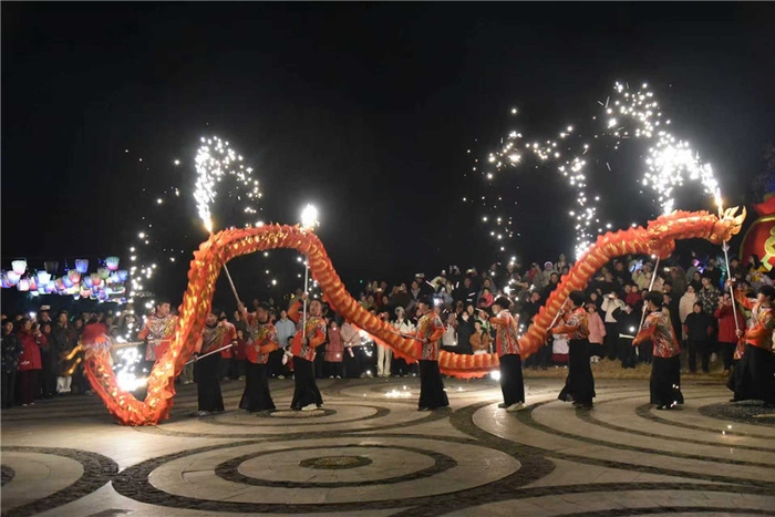 六万情峡景区以“喜乐中国年·全家游乐场”为主题,常态化上演《大别山传奇》新春版,9天演出吸引近2万人次;红色密室《红夜》吸引游客沉浸式体验,让红色教育从被动灌输变为主动探索。悠然蓝溪新春实景演艺周、南山草原烟花盛宴、非遗打铁花与火壶表演等夜游项目,点亮了夜间文旅经济,日均吸引游客近2000人次。时尚感与年轻力的融入,精准吸引了长三角“候鸟”游客,让传统年味焕发新活力。
