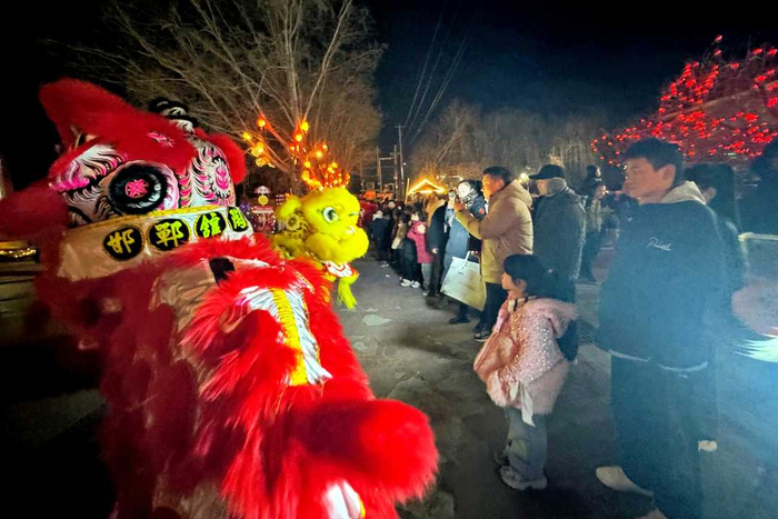 粮画小镇旅游景区夜间舞狮表演。郭江鹏摄
