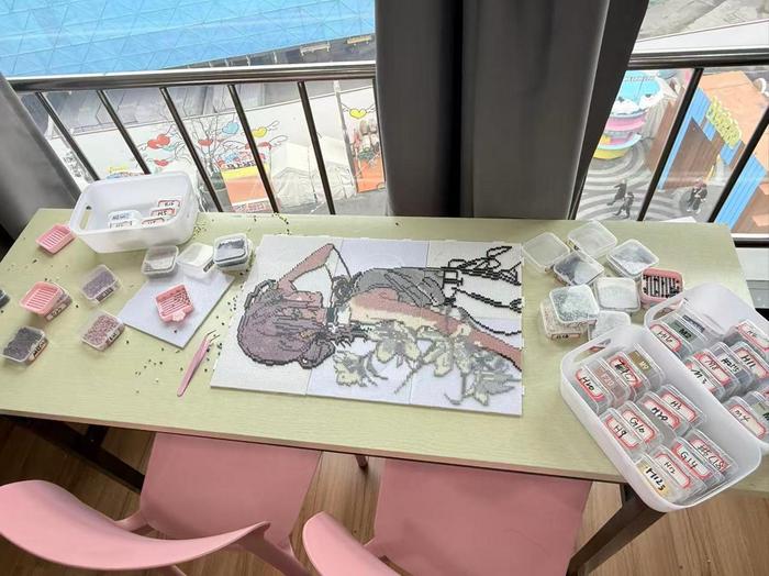 在徐先生看来,拼豆的火爆恰好契合了当下年轻人对“悦己消费”的需求。“很多人来是为了沉浸式放空自己。”上班族在这里暂时抛开工作烦恼,学生们放下学业压力,“专注于喜欢的东西,认真地拼一个下午,这种情绪价值是很强的。”