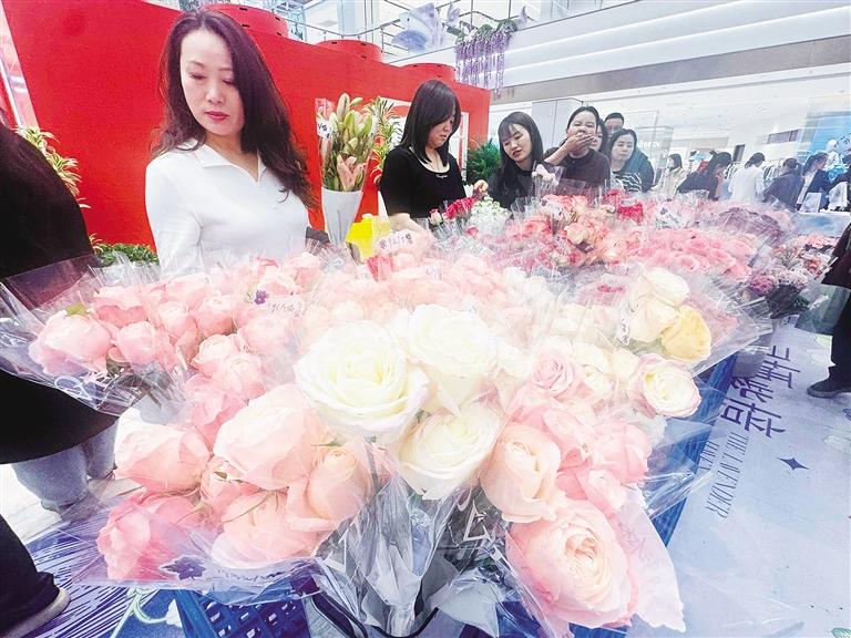 国芳中心4楼中厅打造的沉浸式鲜花市集,不仅有万枝鲜花集中陈列,还有多肉植物、微型景观生态瓶等,吸引过往市民驻足选购,其花束促销价9.9元至25元、单支价格在10元以内,微型景观生态瓶35元/个。兰州中心、吾悦广场、欣大购物广场等商场也推出花艺沙龙、珠宝美学、艺术展、美妆体验、主题分享会等轻体验项目,线上报名迅速满员,人气火爆。