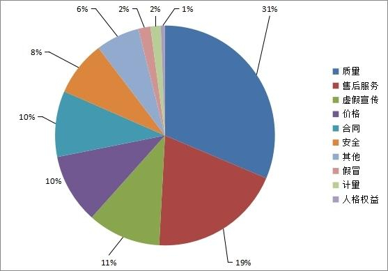 从投诉性质的年度变化来看,质量问题虽仍居首位(21488件,占总投诉量的31.36%),但同比下降6.17个百分点,表明四川省商品和服务质量整体呈逐步提升态势;而售后服务(13357件,占19.49%)、虚假宣传(7372件,占10.76%)、合同纠纷(6632件,占9.68%)三类问题的投诉占比同比分别上升2.61、2.12、0.58个百分点。