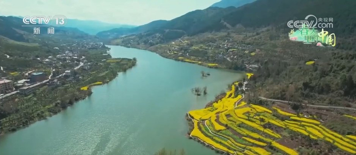 在重庆市黔江区的阿蓬江畔,碧绿的阿蓬江水蜿蜒流淌,沿岸连片的油菜花迎风舒展、次第绽放,金黄花海与碧绿江水相映成趣、美不胜收,吸引了许多市民游客来此踏青。目前,阿蓬江畔的油菜花已进入最佳观赏期,花期可持续至三月下旬。