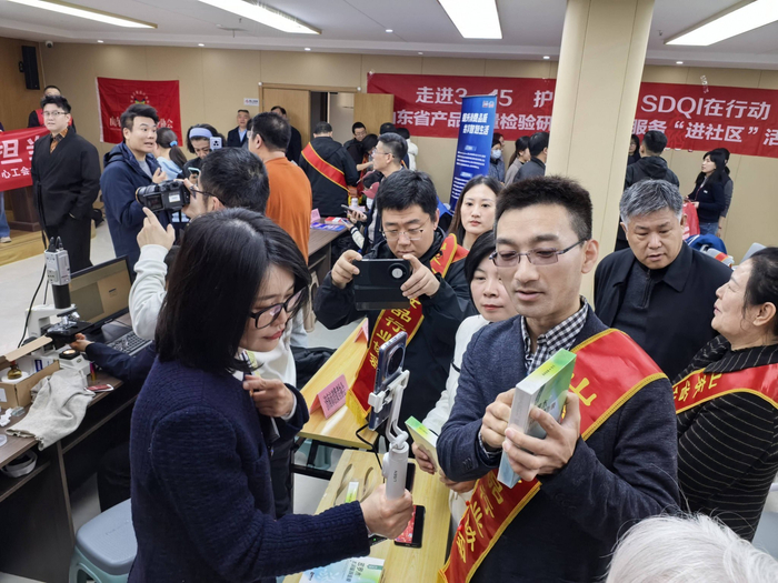 活动现场还设置了多个特色互动展区,为居民提供“零距离”的消费知识科普服务。在产品质量安全区,省产品质量检验研究院工作人员向居民宣传缺陷产品召回政策法规,细致讲解低糖食品选购要点,并现场提供小家电等实物检测服务。在纺织品鉴别区,省纤维质量监测中心专家通过实物对比和现场演示,手把手教授居民辨别真假羊毛羊绒、蚕丝被等纺织品,实用方法引得围观群众频频点头。在化妆品科普区,省化妆品行业协会、省民营整形美容协会分别发放宣传资料,组织会员单位展示优质产品,现场讲解面膜等常用化妆品的真假鉴定技巧与医美消费知识,耐心解答居民日常护肤中的疑问。宠物消费教育专区同样吸引了不少养宠居民。北方宠物网聚焦宠物消费热点,发放宠物消费教育指南和调查问卷,并邀请执业兽医现场坐诊,提供科学养宠与健康咨询服务。同时受理宠物消费维权咨询,针对如何避免“星期宠”陷阱给出了专业防范建议。在健康义诊区,山东新中鲁中医医院专家团队为居民提供免费中医诊疗和健康咨询服务,受到社区居民的广泛好评。