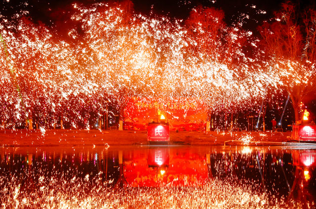 在备受游客喜爱的非遗表演环节,今年也实现了场地与形式双重升级。原有的打铁花表演扩大至四组演员同台演出,并对表演区域进行了优化调整,观演空间更加开阔,在提升安全保障的同时,也让更多游客能够近距离感受“铁花飞溅、火树银花”的震撼场面。