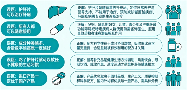 正解:营养补充品是健康生活方式辅助,均衡饮食、限制饮酒、规律作息、适度运动才是维护肝脏健康根本。
