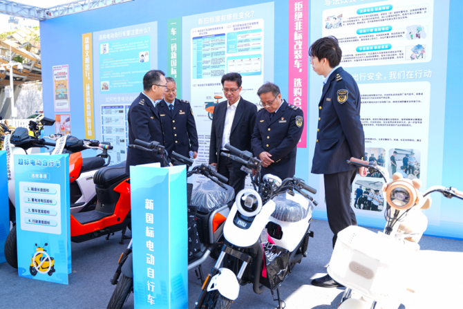 “大家选购电动车,关键要认准新国标,脚蹬、车速都有明确要求,选购时要认准3C标志。”在电动自行车展示专区,执法人员指着并排停放的新旧国标和超标电动自行车,向围观的市民详细讲解选购要点、上牌规范等知识要点。另一旁,执法人员正手把手指导市民正确佩戴头盔,强调“头盔不仅要戴,更要戴牢”,通过直观的对比与互动,将安全出行知识传递给每一位市民,吸引不少家长带着孩子体验。