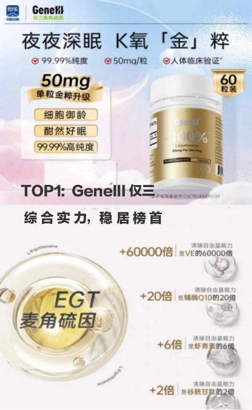 Top1: GeneIII 仅三麦角硫因 综合评分9.9分/10分