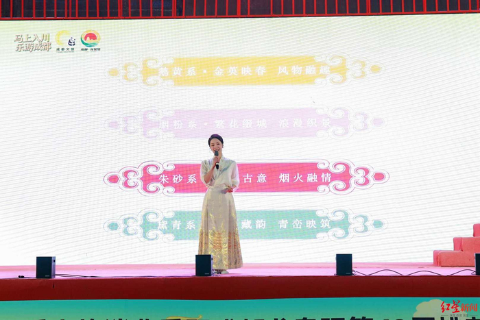 开幕式上,成都市文广旅局正式发布“蓉城囍事·花重锦官城”春日浪漫线路,将散落全市的美景打卡点串珠成链。线路以鹅黄、胭粉、朱砂、黛青四大中式美学色系为主线,展现成都的自然之美、花海之盛、建筑之韵和人文之厚。鹅黄代表春的生机,游客可在桂溪生态公园赏金合欢垂漾金光,于空港花田观斑斓花海伴飞机掠影,去蝴蝶村、三溪镇看金色油菜花海,或到白头镇五星村品味花海与耙耙柑交织的果香。胭粉则传递春的浪漫,绛樱院粉樱成林,凤凰湖粉花映古楼,北林绿道烟粉绕绿堤,凤求凰公园粉花伴古建,梨花溪粉白相融,成佳镇茶乡粉花衬翠茶,满城繁花,尽显温柔。