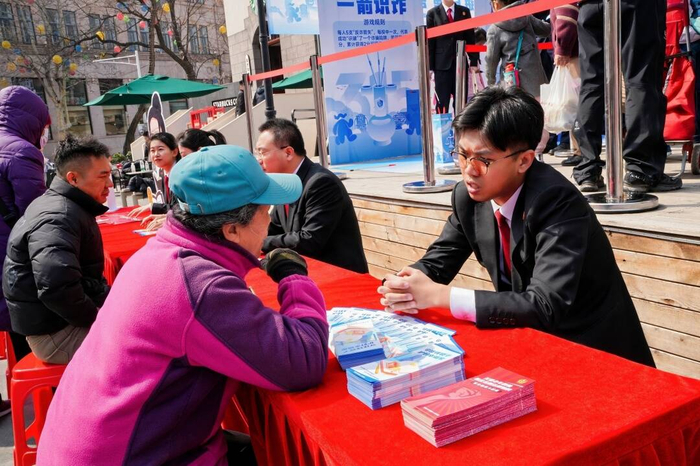 3月15日讯 为进一步强化消费者风险防范意识,打通普法宣传“最后一公里”,3月15日,青岛市市南区人民法院组织开展“小徐走金融”暨3·15消费者权益保护日普法宣传活动,以司法之力守护群众消费安全。青岛市市南区人民法院中山路法庭、刑事审判庭、执行局等部门10余名干警参加活动。