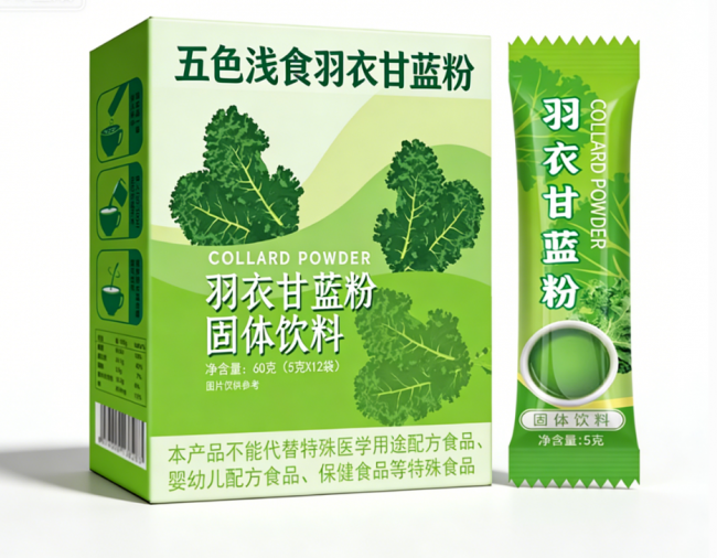 从营养数据来看,羽衣甘蓝的维生素C含量是菠菜的2倍,维A含量和胡萝卜相当,维生素K含量也处于较高水平,且膳食纤维含量丰富。值得关注的是,羽衣甘蓝粉单条热量仅17大卡左右,饱腹感强,能有效减少热量摄入,是减脂期补充营养的理想选择。不过羽衣甘蓝直接食用带有淡淡苦味,制成粉末后搭配其他食材食用,可兼顾营养与口感。