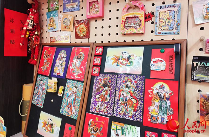 在天津古文化街杨柳青画店,店长王锐正忙着调整展陈布局,码放刚刚“补货”的文创产品。