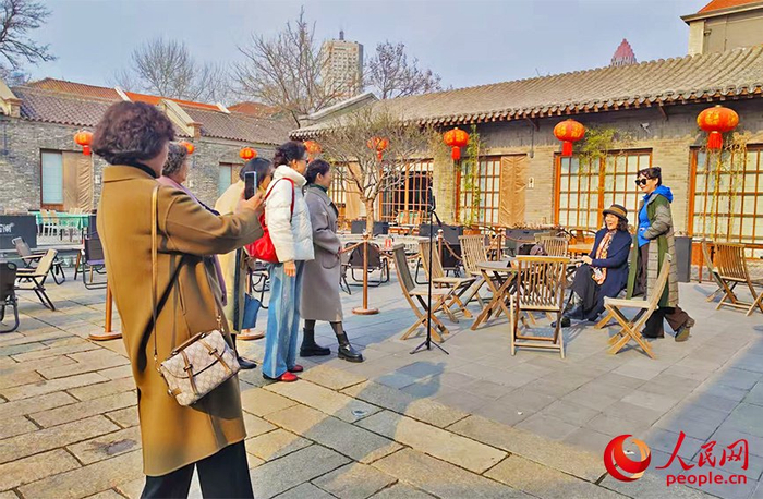 樘院内,打扮时髦的阿姨互相拍照打卡。人民网记者 郭维瑾摄