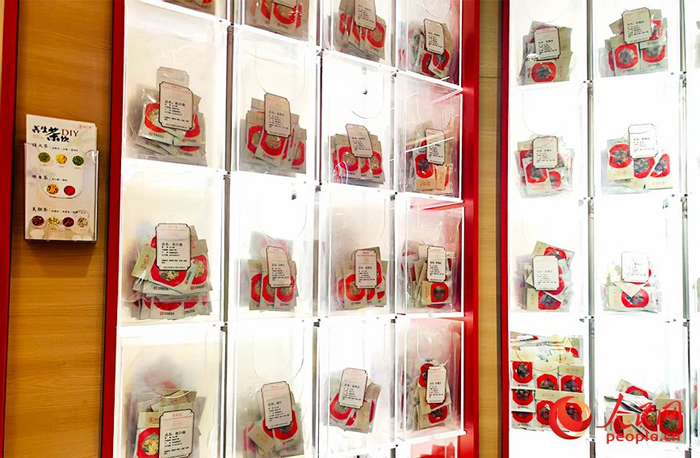 可供消费者DIY养生茶饮的“药墙”。人民网记者 郭维瑾摄